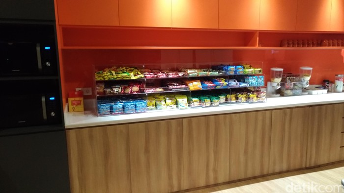 Para karyawan tak perlu khawatir kelaparan saat kerja. Di pantry selalu tersedia makanan ringan untuk ngemil atau ganjal perut. Foto: Moch Prima Fauzi/detikINET
