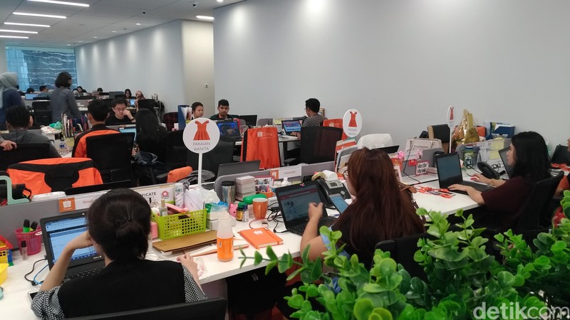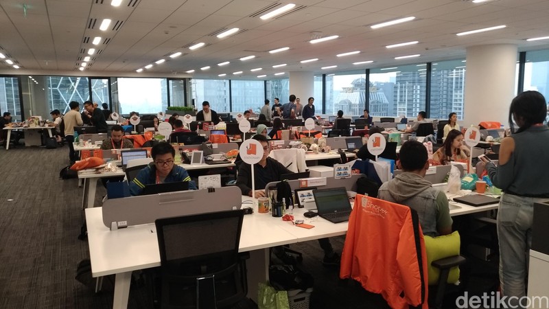 Suasana ruang kerja di kantor baru Shopee. Mayoritas karyawannya adalah anak-anak muda. Foto: Moch Prima Fauzi/detikINET