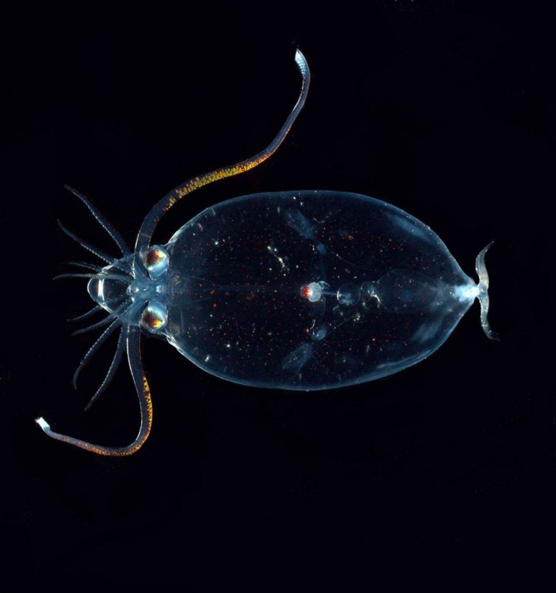 Glass Squid atau cumi-cumi kaca dapat ditemui di belahan laut bagian selatan. Hewan ini memiliki organ mata yang bercahaya dan memiliki kemampuan untuk roll menjadi bola yang biasa dikenal dengan landak air. Total ada sekitar 60 spesies berbeda dari cumi-cumi kaca di seluruh dunia. Mereka memiliki lengan-lengan kecil yang pendek dan struktur tubuh yang unik. (Foto: Internet)