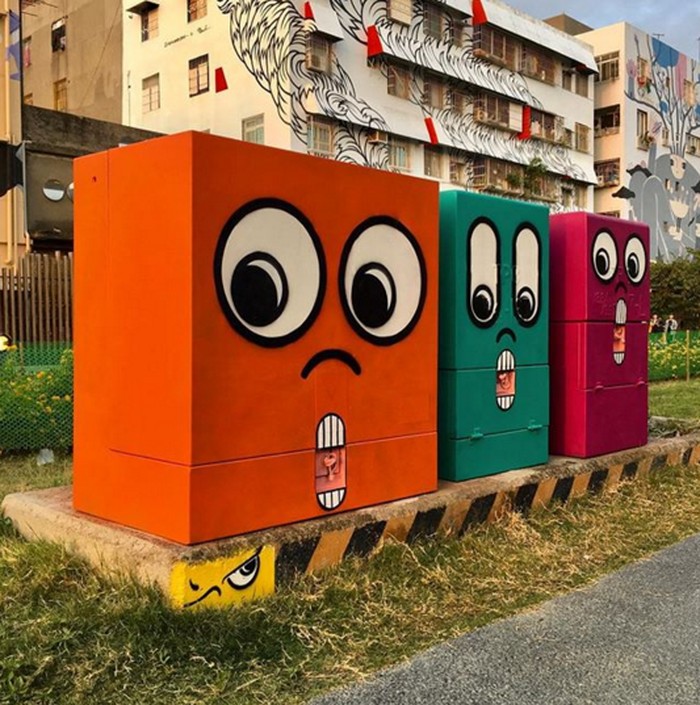 Ini dia hasilnya. Kotak-kotak yang awalnya terlihat biasa dibuat menjadi karakter lucu dan warna-warni. (Foto: Instagram/tombobnyc)