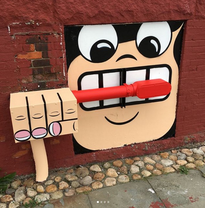 Tentu tak hanya sembarang gambar, butuh ide cemerlang bagi Bob untuk bisa mengubah benda mati dengan gambar animasi agar terlihat menyatu dan hidup. (Foto: Instagram/tombobnyc)