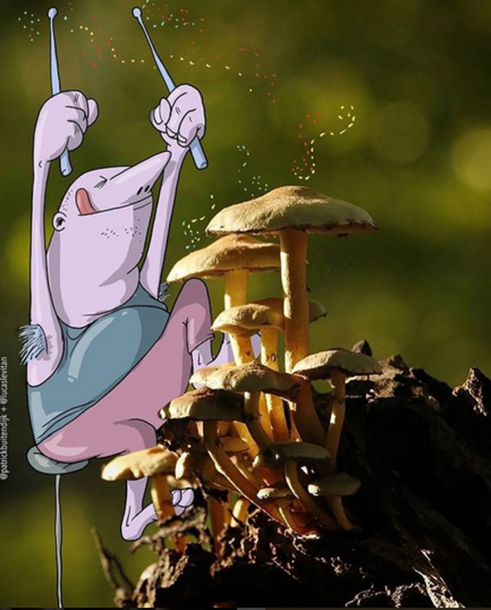 Foto tumbuhan jamur yang seolah digambarkan menjadi sebuah drum musik. (Foto: Instagram/lucaslevitan)