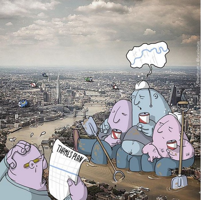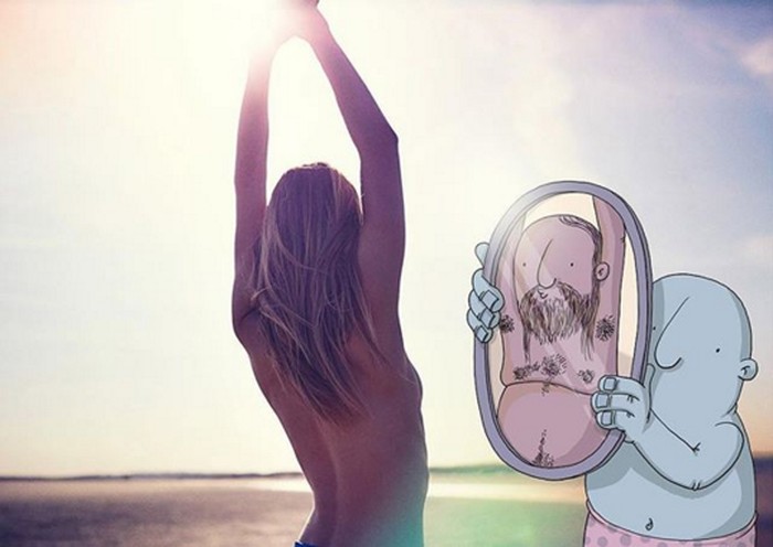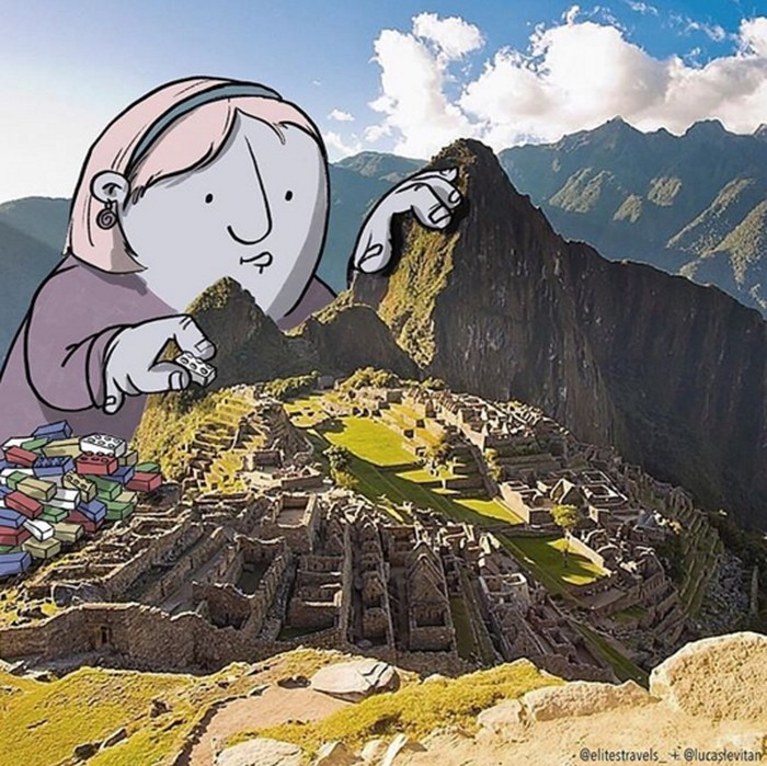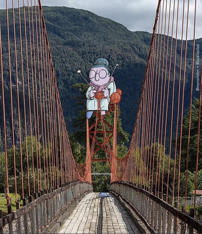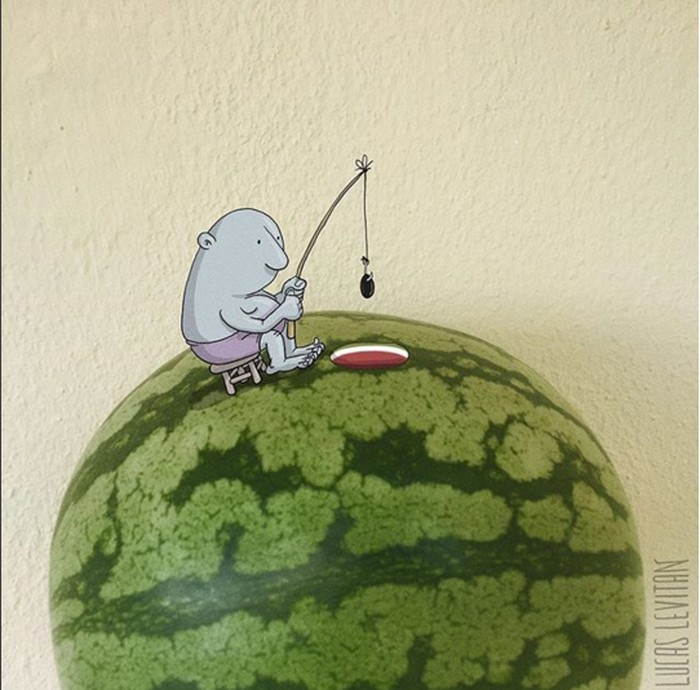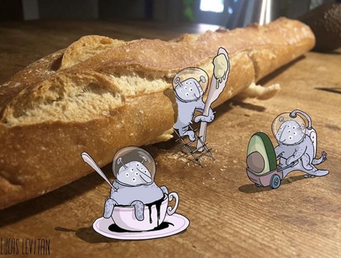Ia membuat karakter kartun yang konyol, lucu, atau aneh sehingga terkadang malah memberi makna baru pada foto. (Foto: Instagram/lucaslevitan)