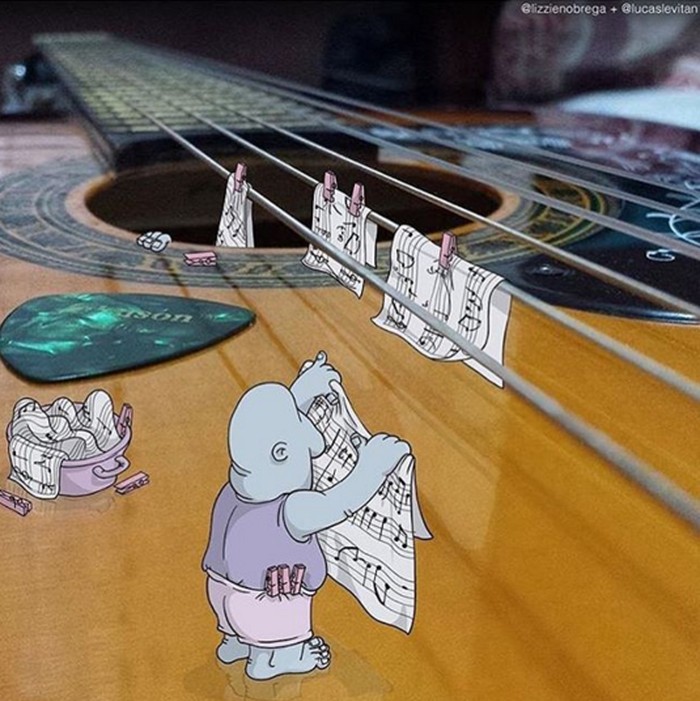 Meski terlihat sederhana, tapi ia membuatnya secara detail dan bercerita menyesuaikan objek foto tersebut. (Foto: Instagram/lucaslevitan)
