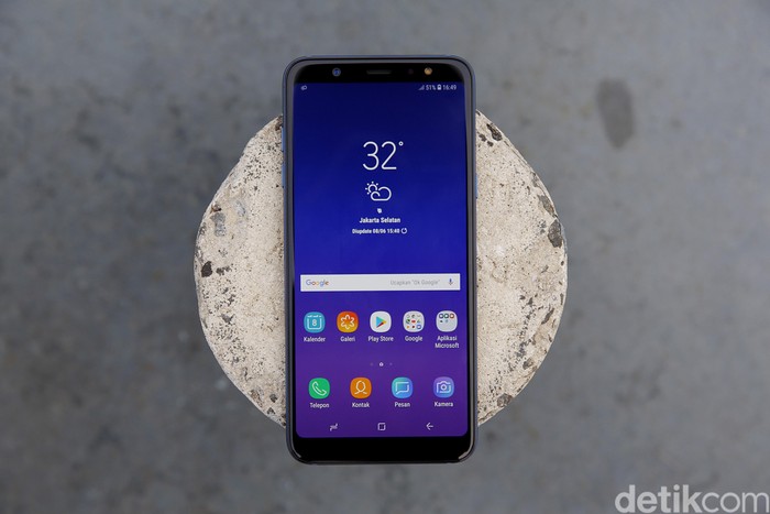 Samsung menyematkan prosesor octa core 1,8 GHz dengan RAM 4 GB, serta memori internal 32 GB pada Galaxy A6+. Foto: Muhammad Ridho
