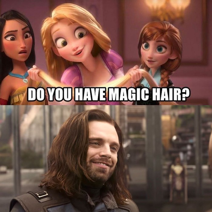 Selain Thor, ada juga Bucky yang bahkan rambutnya lebih bergelombang. Foto: Instagram @9GA