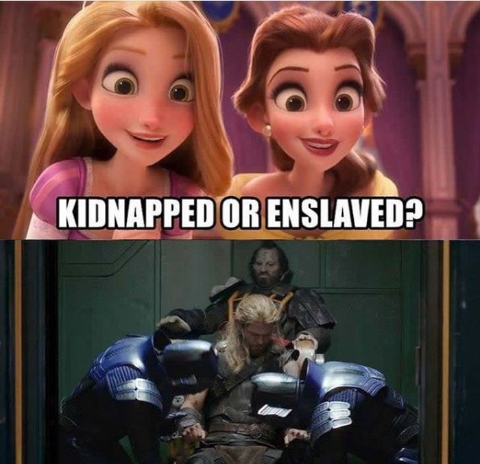 Jika para puteri Disney kerap dikurung atau diperbudak, Thor juga pernah disekap agar rambutnya dapat dipangkas secara paksa.Β Foto: Instagram @9GAG