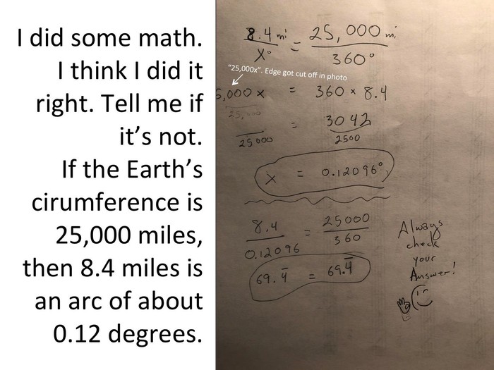 Lalu, ia membandingkan sudut penglihatannya dengan sudut satu lingkaran penuh Bumi.Β Foto: Imgur/Greg Pagel
