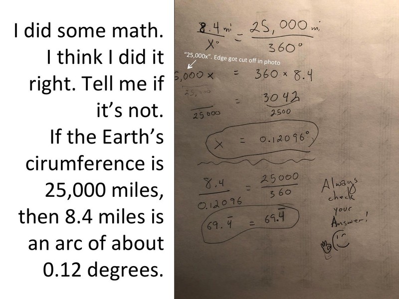 Lalu, ia membandingkan sudut penglihatannya dengan sudut satu lingkaran penuh Bumi. Foto: Imgur/Greg Pagel