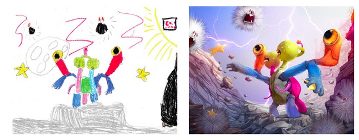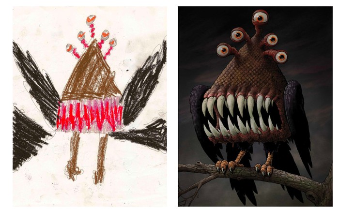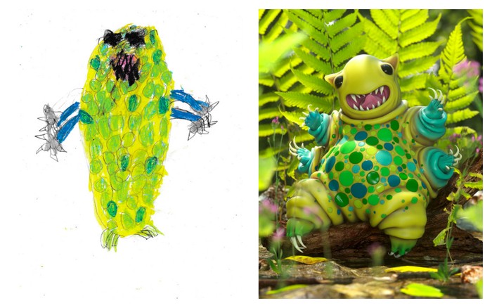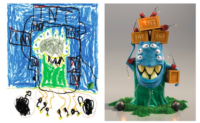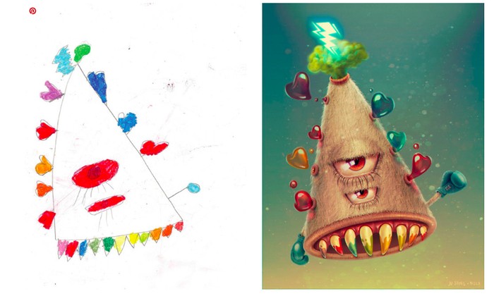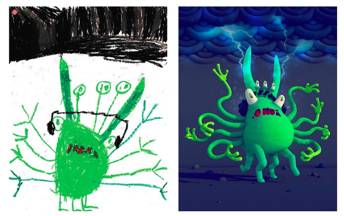 Anak-anak memiliki imajinasi yang tinggi dan menarik. Nah bagaimana ketika mereka diminta menggambar monster kemudian diolah para desainer grafis?