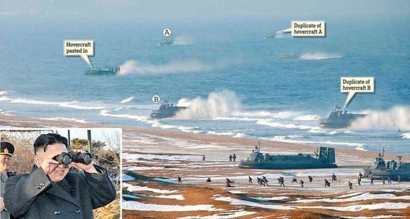 Pada 2013, Korut merilis foto latihan di sekitar pantai dengan beberapa kapal jenis hovercraft. Setelah diamati, Hovercraft itu terlihat lebih besar dari seharusnya dan sangat identik sehingga dipastikan rekayasa. Foto: Istimewa