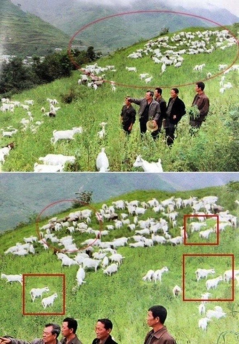 Tampak sebuah lahan menghijau dengan banyak sekali hewan ternak, menggambarkan Korut yang makmur. Tapi banyak dari ternak itu ternyata cuma duplikasi dari ternak lainnya sehingga dipastikan jumlahnya tidak seperti yang terlihat. Foto: Istimewa