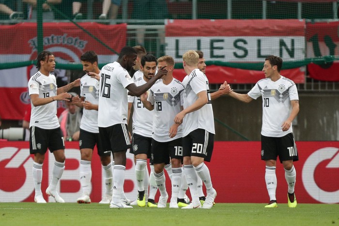 Juara bertahan Piala Dunia Jerman juga tak lebih unggul dari Brasil dalam urusan perbincangan netizen. Tim Panser hanya unggul satu peringkat dari Brasil berada di posisi nomor 6. Foto: Lisi Niesner/Reuters