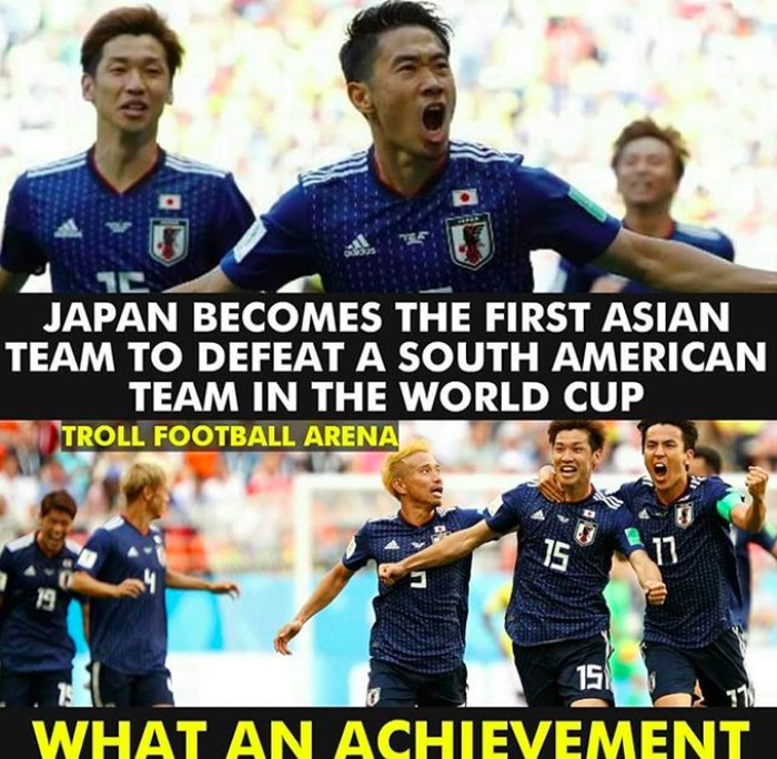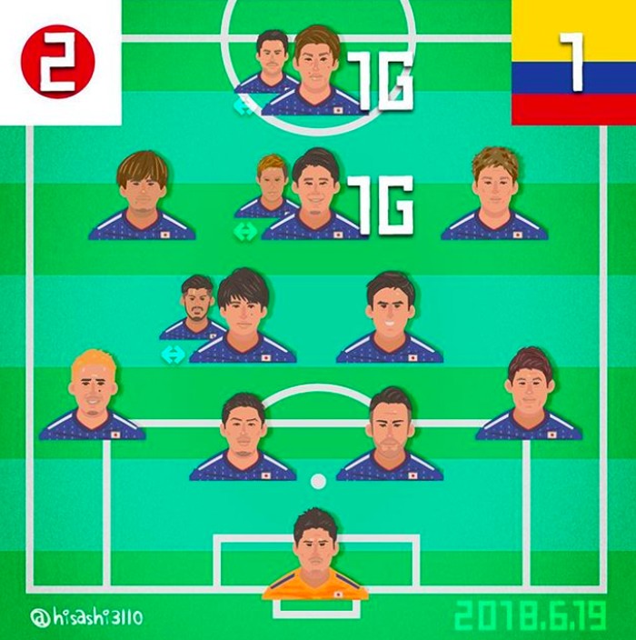 Para pemain Jepang yang diwakili karakter di komik Captain Tsubasa terlihat gembira dan Kolombia sebaliknya. Foto: istimewa