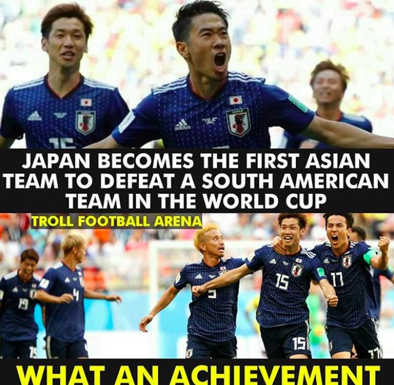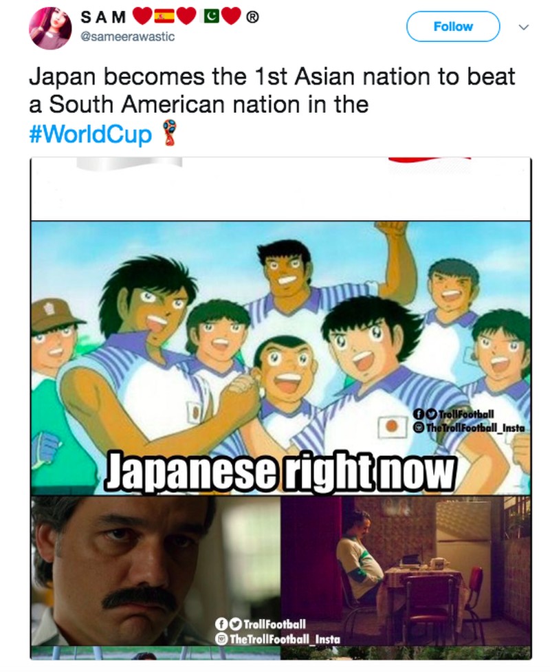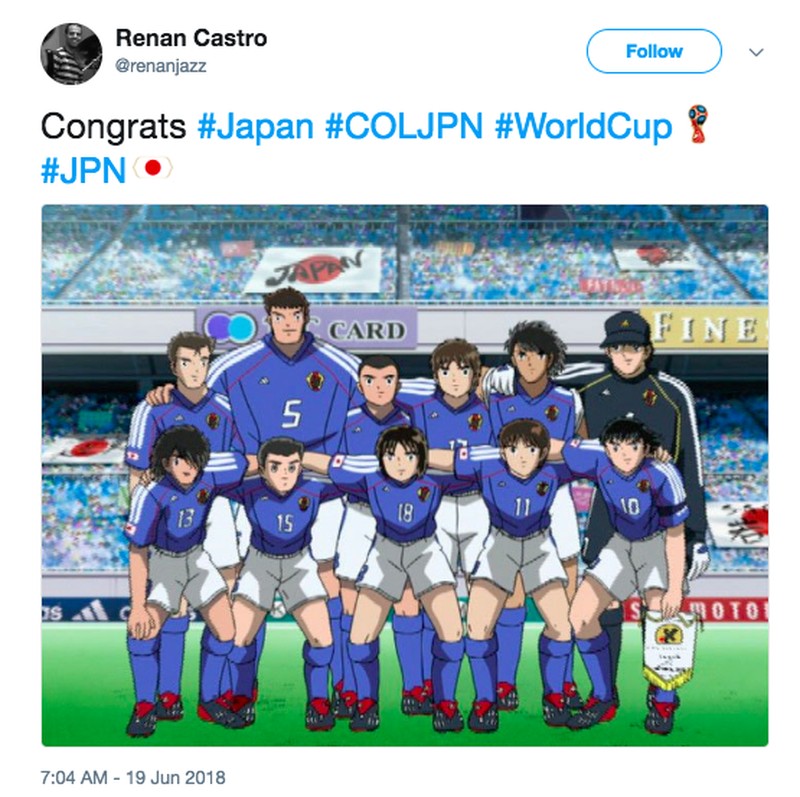 Para pemain Jepang yang diwakili karakter di komik Captain Tsubasa terlihat gembira dan Kolombia sebaliknya. Foto: istimewa
