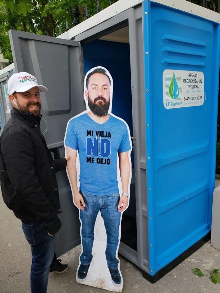 Caranya Javier dibawa dalam bentuk replika yang dibuat dari kardus. Jadi mereka mencetak versi Javier yang seukuran dirinya. (Foto: Instagram/IngueSuMatrushka)