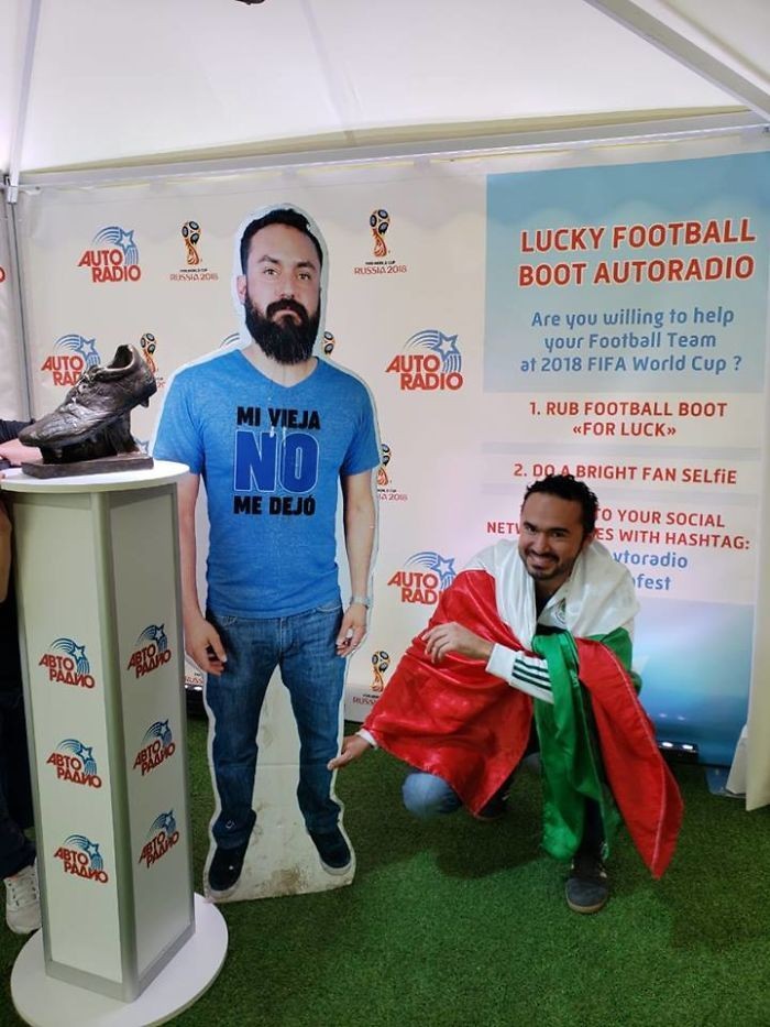 Pria tersebut bernamaΒ Javier asal Meksiko. Keinginannya berkunjung ke Rusia untuk nonton langsung piala dunia 2018 sudah diimpikannya sejak 4 tahun silam. (Foto: Instagram/IngueSuMatrushka)