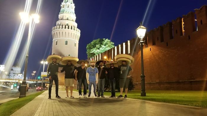 Meskipun Javier tidak diizinkan pergi, teman-temannya memiliki ide super kocak tapi kreatifΒ agar Javier tetap eksis di piala dunia 2018. (Foto: Instagram/IngueSuMatrushka)