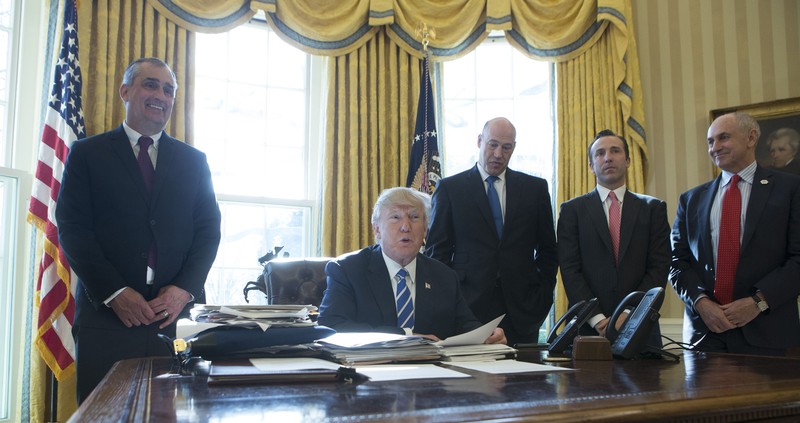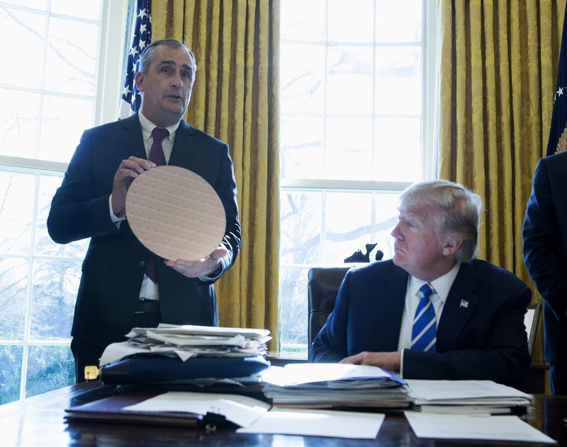 Saat mengunjungi Donald Trump di Gedung Putih pada februari 2017 di mana Brian mengumumkan bahwa Intel akan membangun pabrik senilai USD 7 miliar di Arizona. Foto: Getty Images