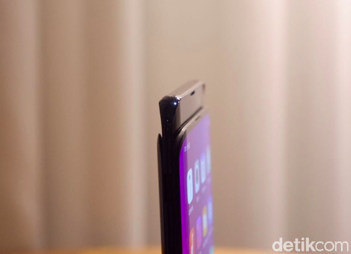 Ketika membuka aplikasi kamera atau akan membuka ponsel dengan pemindai wajah, modul tersebut akan muncul dengan cepat. Oppo mengklaim kecepatan munculnya hanya 0,5 detik.Β Foto: Adi Fida Rahman/detikinet