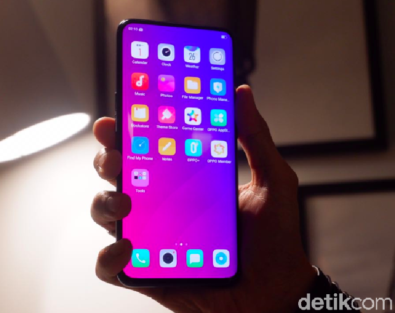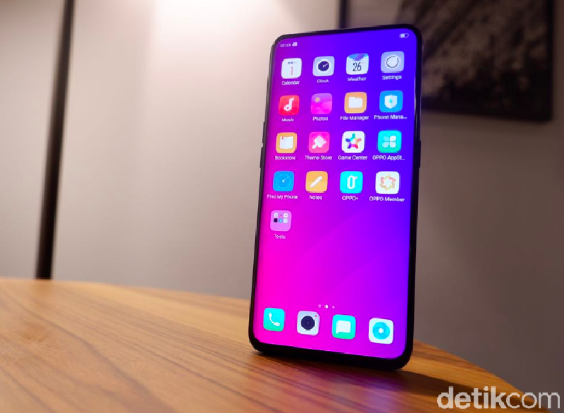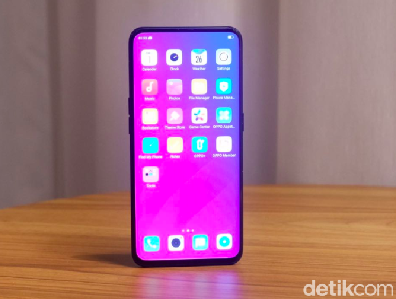 Find X punya ponsel paling lega yang ada di pasaran. Bukan karena ukuran layarnya 6,4 inch. Tapi karena ponsel ini punya rasio screen-to-body 93,8% dan tanpa notch. Notch tak diperlukan karena kameranya disembunyikan. Foto: Adi Fida Rahman/detikinet