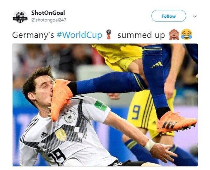 Untungnya mereka bisa menang lawan Swedia lewat gol spektakuler Tony Kroos di menit akhir. Foto: Meme/Twitter