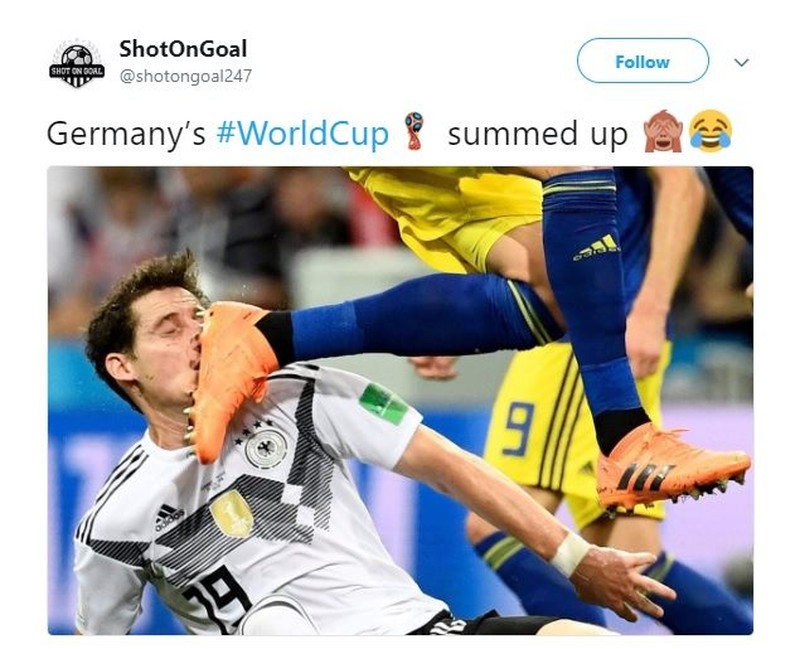 Foto ini sempat menjadi gambaran perjalanan Jerman di Piala Dunia 2018 yang bisa dibilang berantakan. Foto: Meme/Twitter