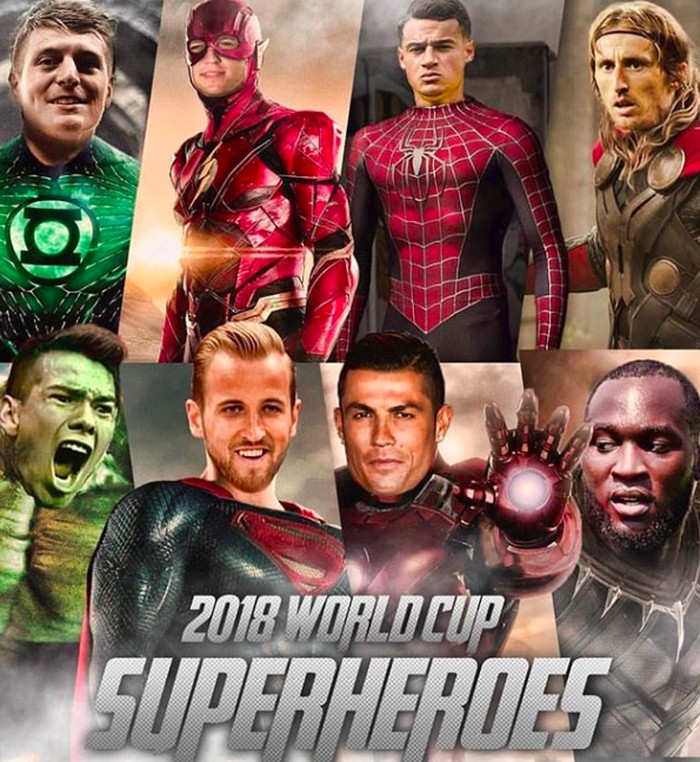 Di sini, Kane digambarkan sebagai Superman sementara bintang lainnya yang bersinar di Piala Dunia 2018 digambarkan sebagai karakter superhero lain. Foto: istimewa