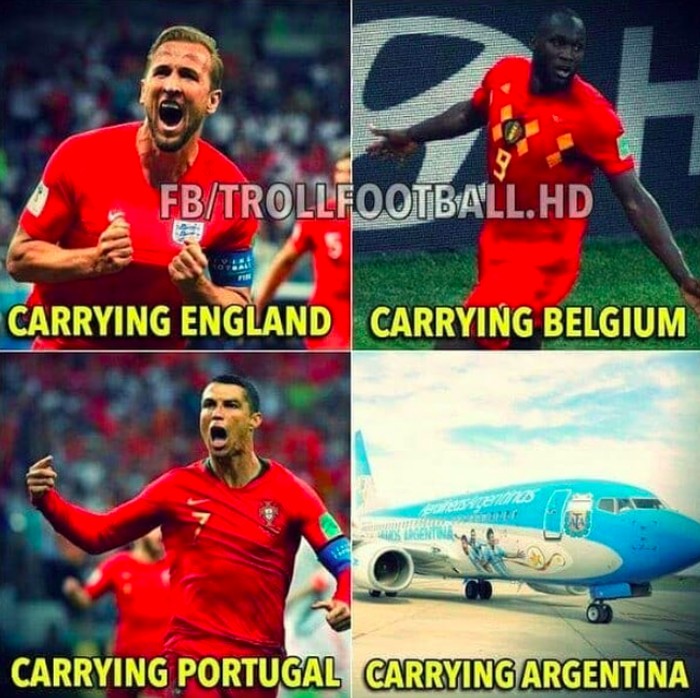 Kane mengangkat Inggris, Lukaku mengangkat Belgia, Ronaldo mengangkat Portugal dan Argentina diangkat pesawat terbang karena Messi melempem. Foto: istimewa