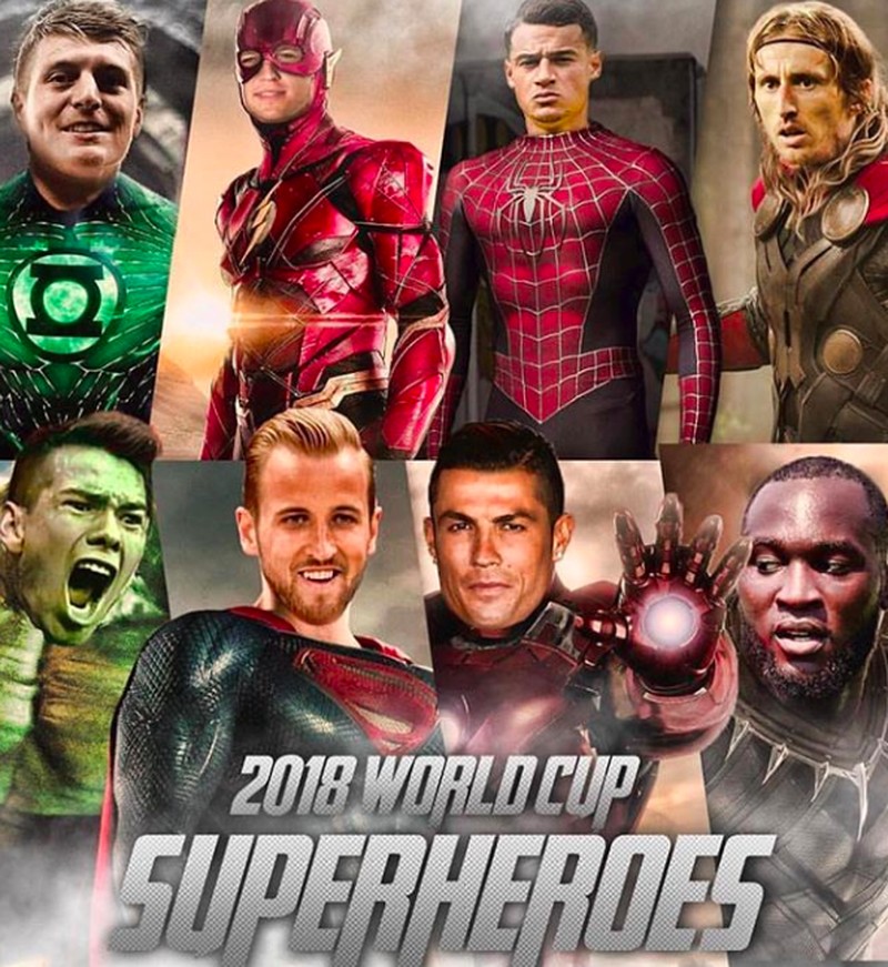 Di sini, Kane digambarkan sebagai Superman sementara bintang lainnya yang bersinar di Piala Dunia 2018 digambarkan sebagai karakter superhero lain. Foto: istimewa