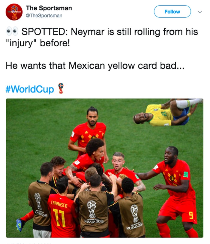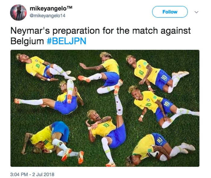 Dalam pertandingan melawan Belgia pun Neymar masih terlihat berguling dari pertandingan sebelumnya. Foto: istimewa
