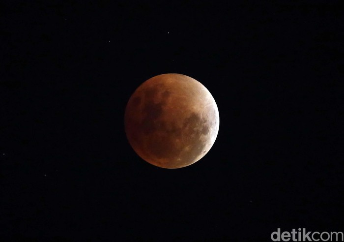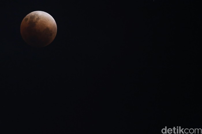 Sedangkan fase total mulai berlangsung pukul 02.30 - 04.13 WIB atau terbilang satu jam 43 menit. Fase total ini yang disebut sebagai gerhana bulan total terlama pada abad 21 sejauh ini. Β (Foto: Rachman Haryanto)