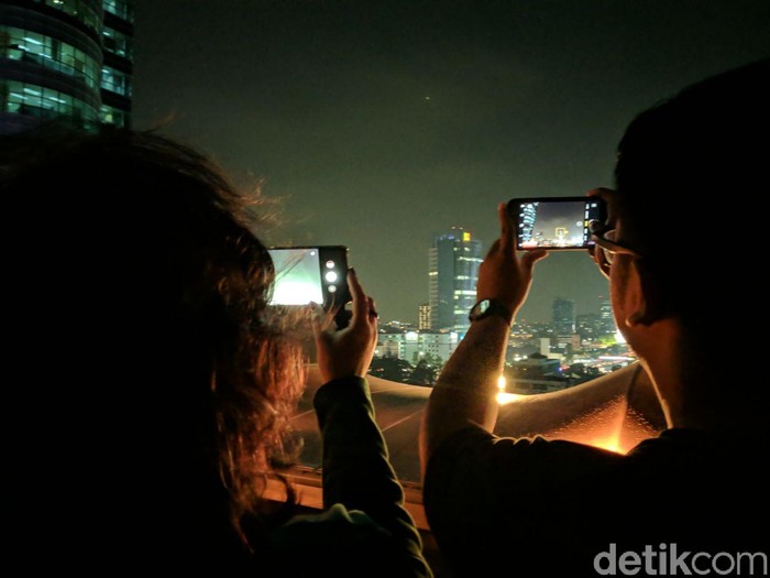 Banyak yang mengabadikannya melalui kamera ponsel maupun kamera DSLR agar bisa menangkap wajah satelit Bumi itu dengan jarak yang lebih dekat. (Foto: detikINET/Adi Fida Rahman)