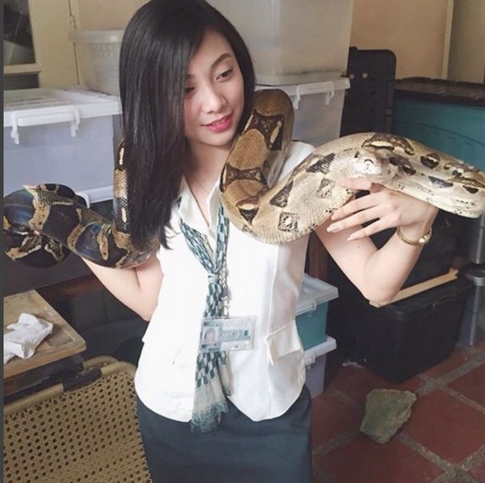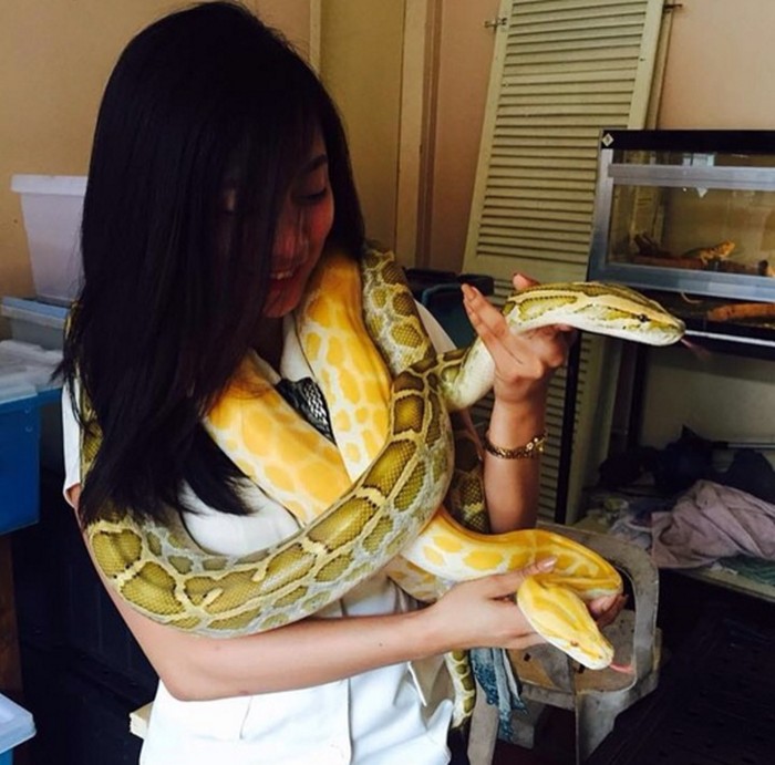 Hal yang menarik dari sosok wanita ini adalah penyuka binatang tak biasa, tak seperti kebanyakan wanita lain yang menyukai anjing atau kucing namun ia menyukai ular. (Foto: Instagram)