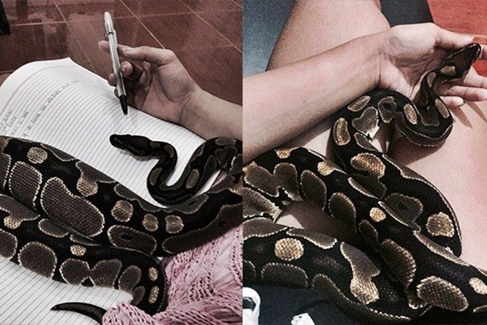Bahkan dia mengatakan ular selalu bersamanya setiap saat, entah mau tidur ataupun jalan-jalan di luar. (Foto: Instagram)