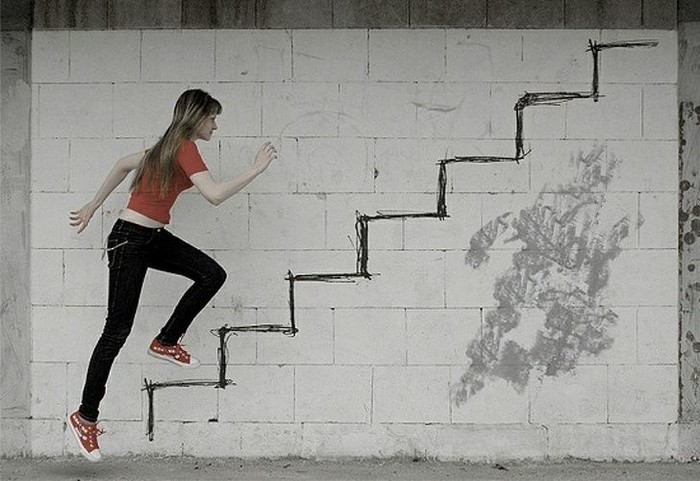 Tebak! dia naik tangga beneran atau tidak? (Foto: Brightside)