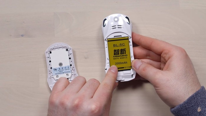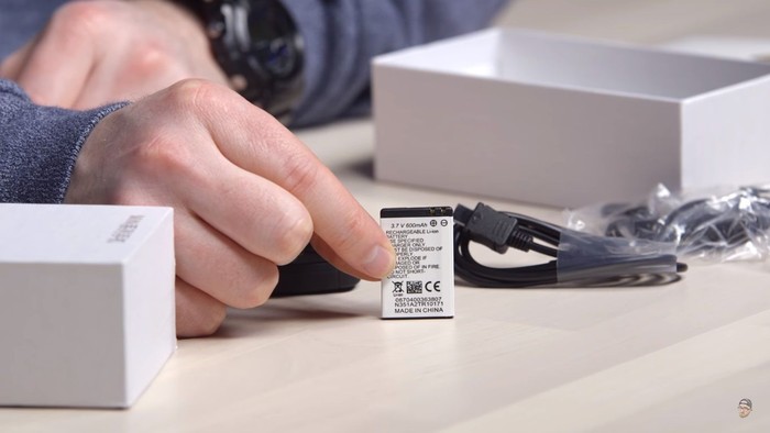 Karena bentuknya yang mungil sekali, ponsel ini pun hanya dibekali baterai dengan kapasitas 600mAh. Foto: YouTube/UnboxTherapy