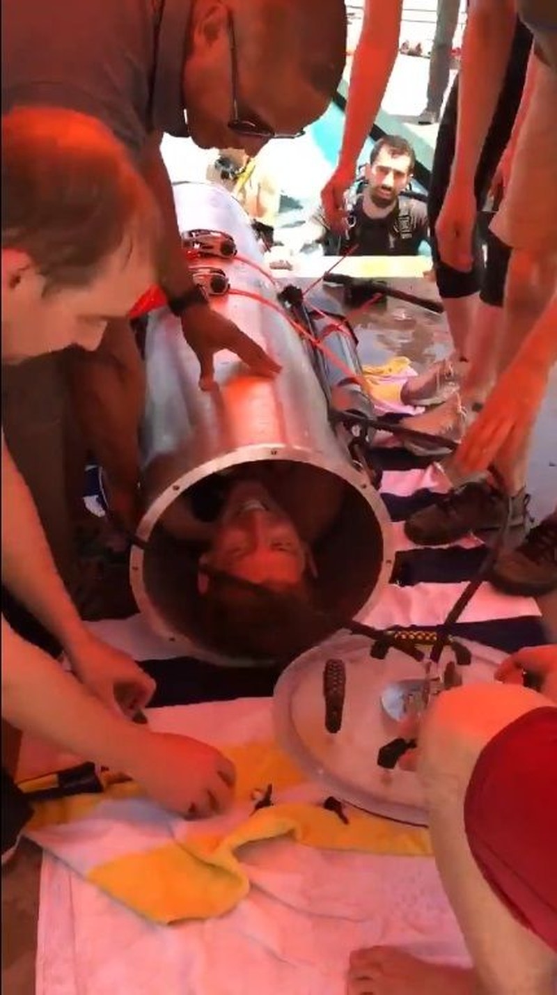 Kapal selam mini itu melakukan uji coba terhadap kemampuan kapal selam tersebut saat melewati medan sempit dan sulit. Foto: Twitter/ElonMusk