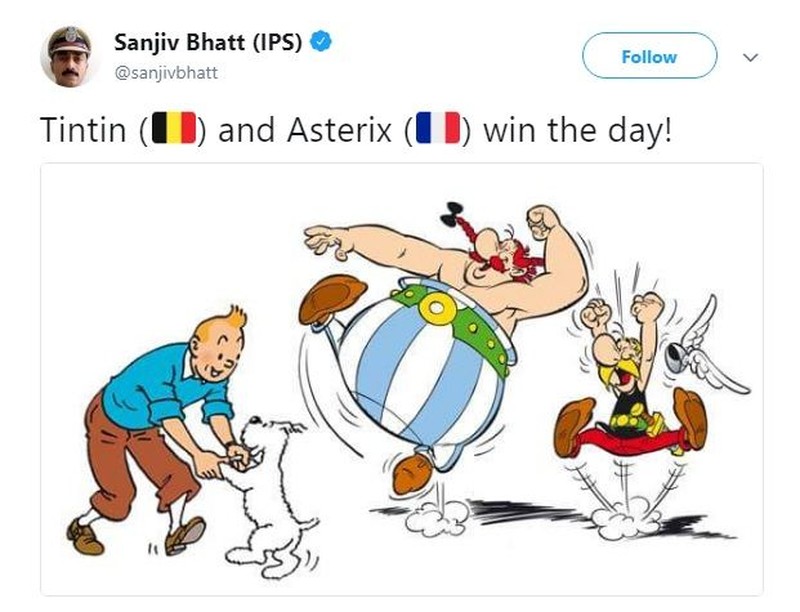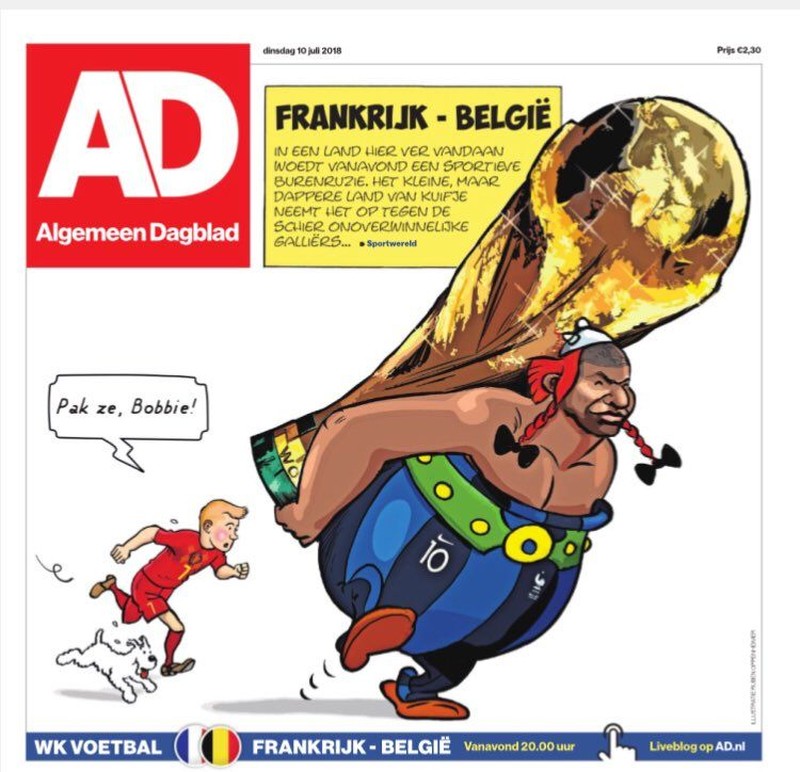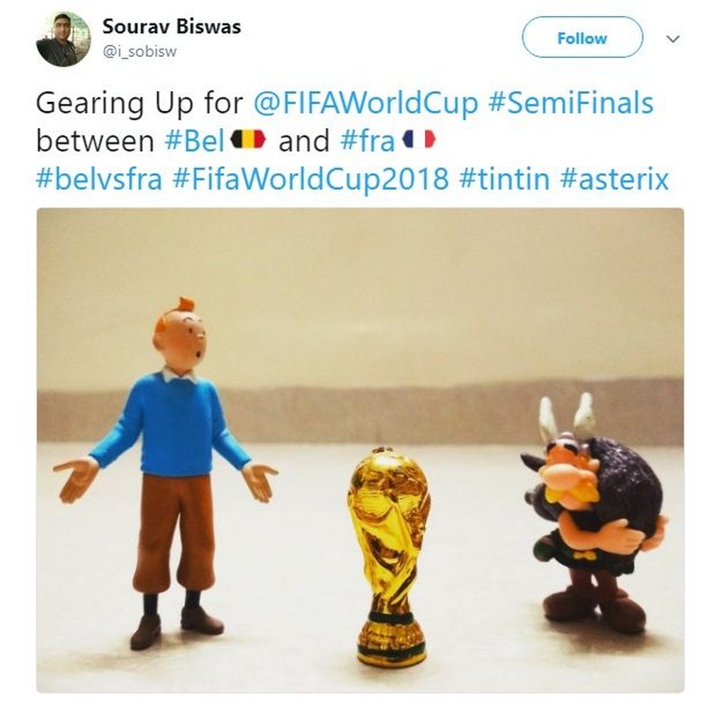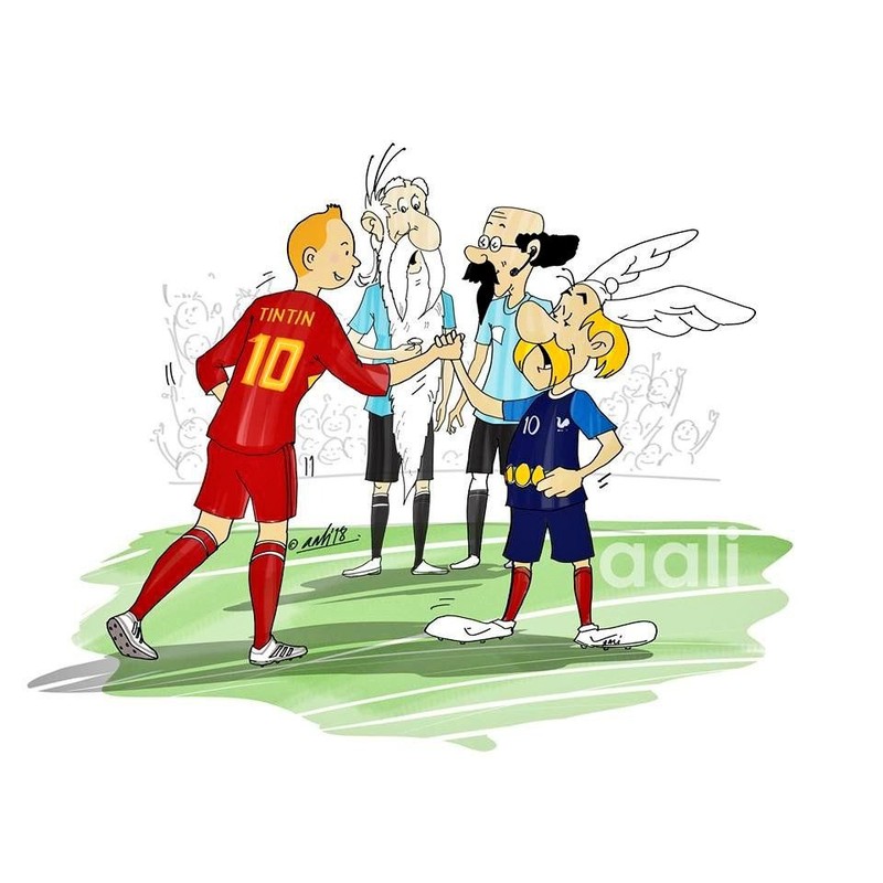Dua karakter kartun legendaris, Tintin dan Asterix, mencuri perhatian netizen di media sosial jelang laga Prancis vs Belgia di semifinal Piala Dunia. Foto: Istimewa