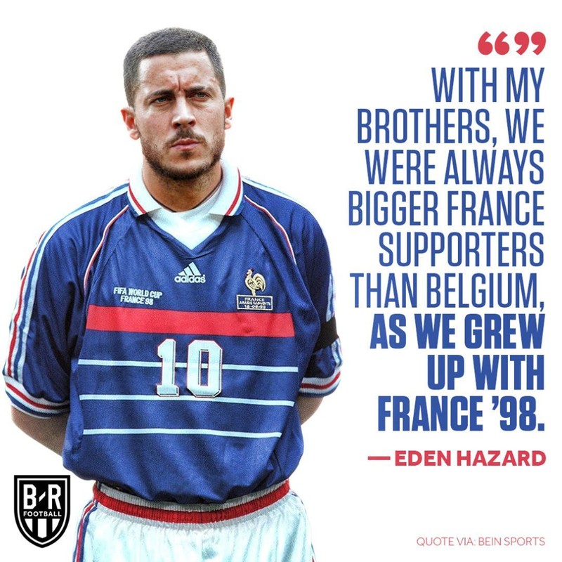 Selain itu, Eden Hazard mengaku lebih seperti suporter Prancis dibanding Belgia lantaran tumbuh besar dengan tim juara Piala Dunia 1998. Foto: Instagram/brfootball