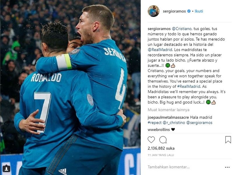 Sergio Ramos mengutarakan perasannya bisa bermain bersama Ronaldo selama di Real Madrid. Foto: Istimewa