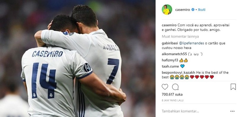 Casemiro ucapkan terima kasih karena banyak belajar dari Ronaldo. Foto: Istimewa
