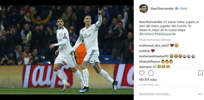 Satu lagi pemain yang merasa sangat senang bisa bermain satu tim dengan Ronaldo. Dia adalah Theo Hernandez. Foto: Istimewa