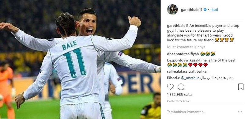 Gareth Bale berharap yang terbaik untuk Ronaldo. Foto: Istimewa