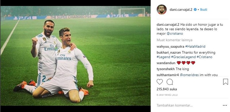 Kalau kata Carvajal, suatu kehormatan bisa bermain satu tim dengan Ronaldo. Foto: Istimewa