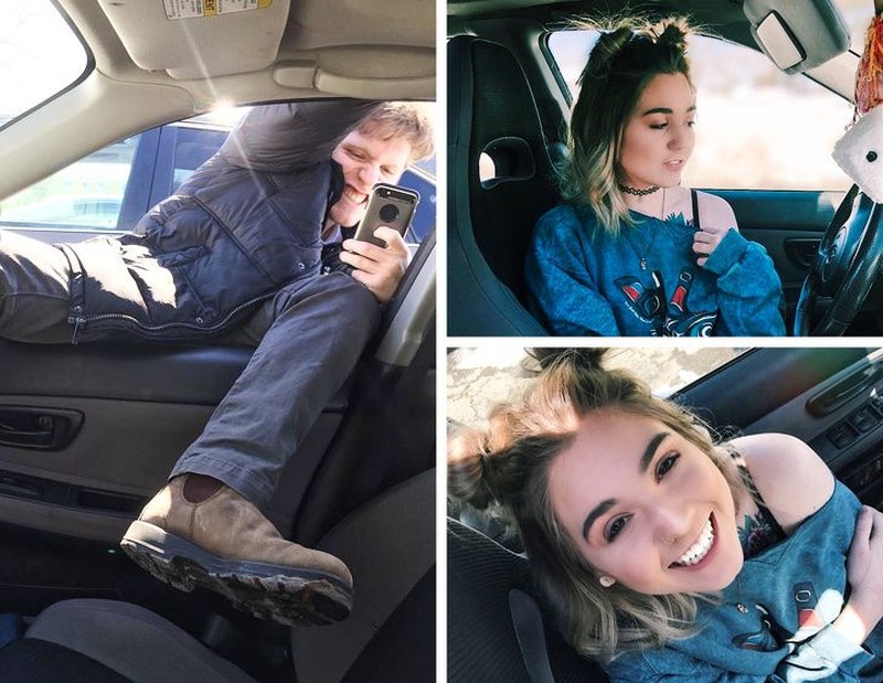 Perjuangan mengambil foto di dalam mobil. (Foto: Brightside)