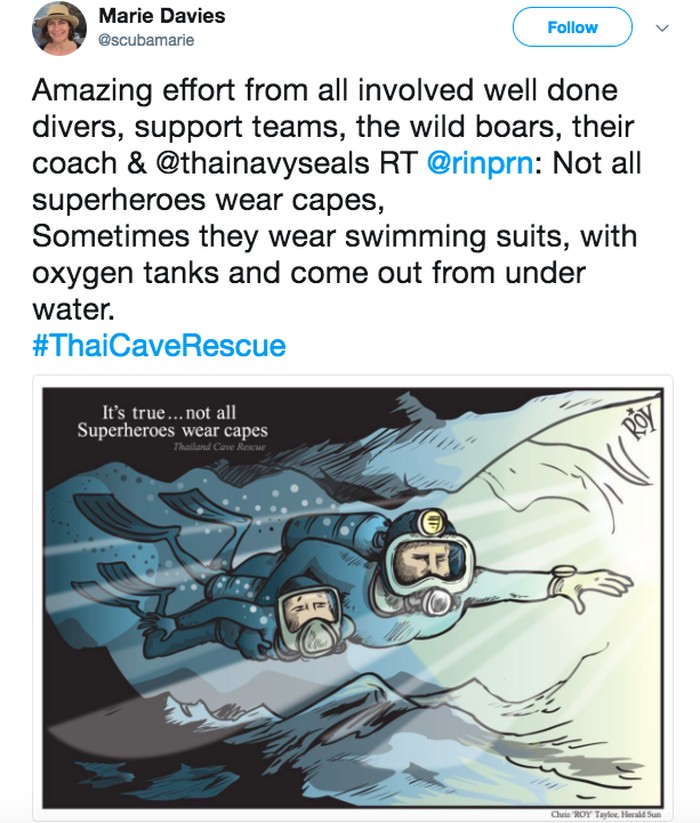 "Tak semua pahlawan mengenakan jubah, beberapa mengenakan tank selam," tulis netizen ini. Foto: istimewa