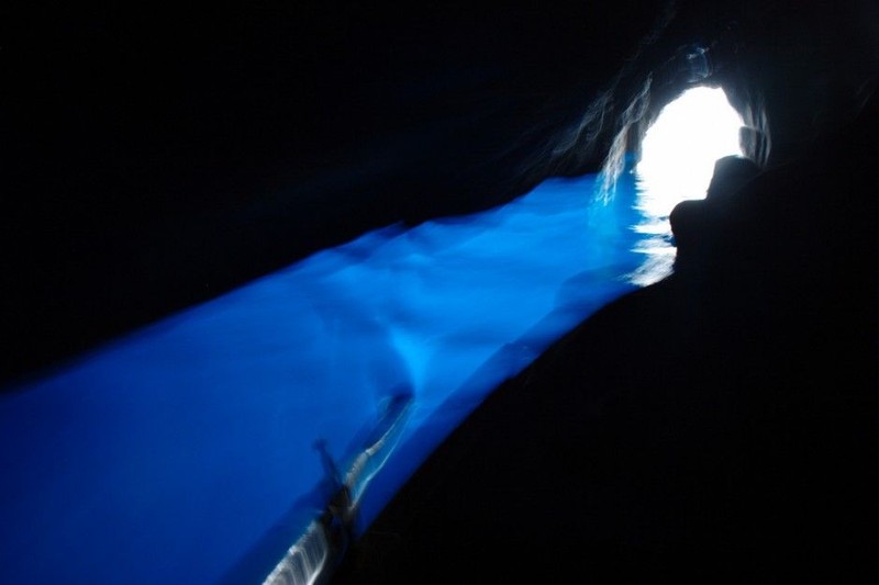 Blue Grotto di Capri, Italia, sangat dekat dengan permukaan air laut sehingga pengunjung kerap menggunakan perahu motor, lalu berganti menggunakan sampan, kemudian berenang agar bisa masuk ke dalam gua. Foto: Matador Network
