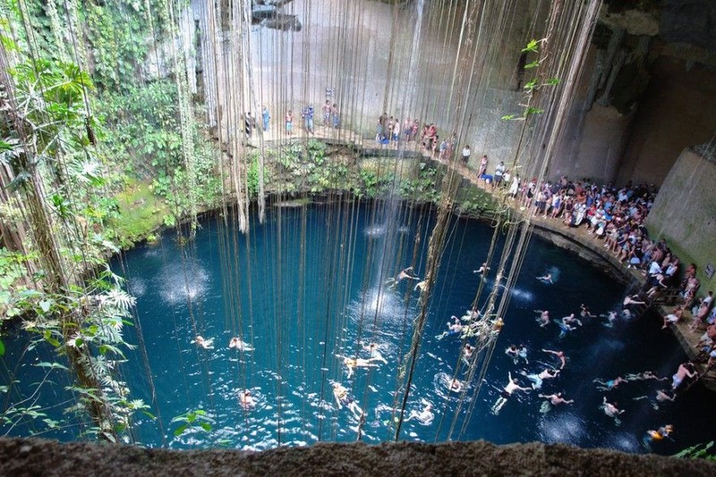 Cenote Ik Kil di Meksiko merupakan gua yang menjadi salah satu destinasi favorit untuk berenang. Foto: Matador Network