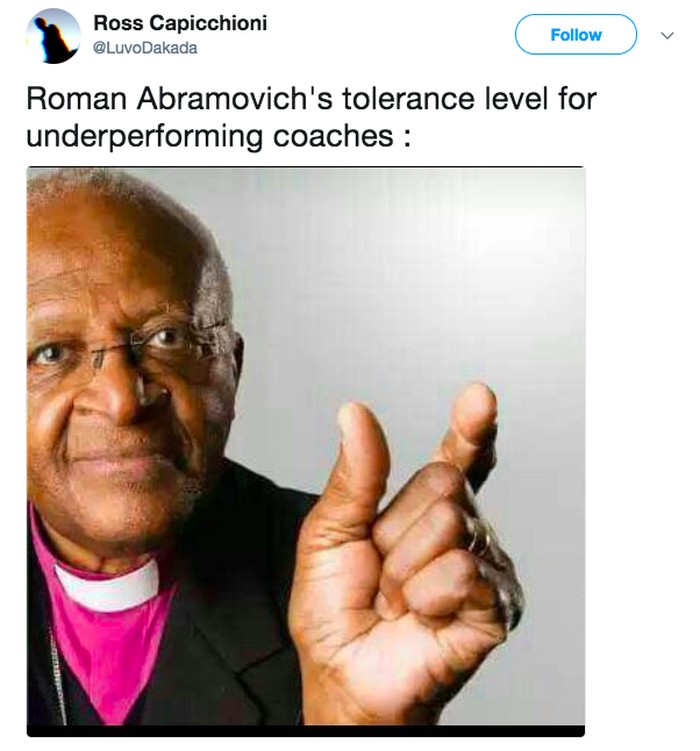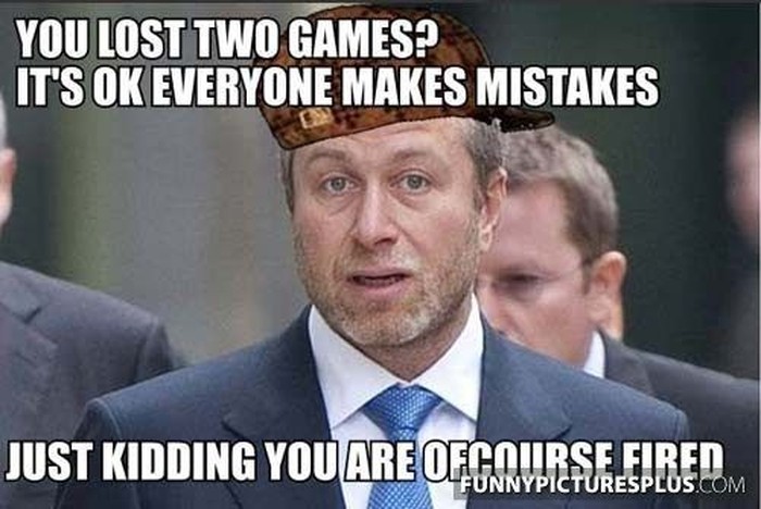 Kekejaman Roman Abramovich digambarkan dalam meme ini "Kamu kalah dua pertandingan? Tak mengapa, semua orang bikin kesalahan. Tapi itu bercanda, tentu saja kamu dipecat," kata dia. Foto: istimewa